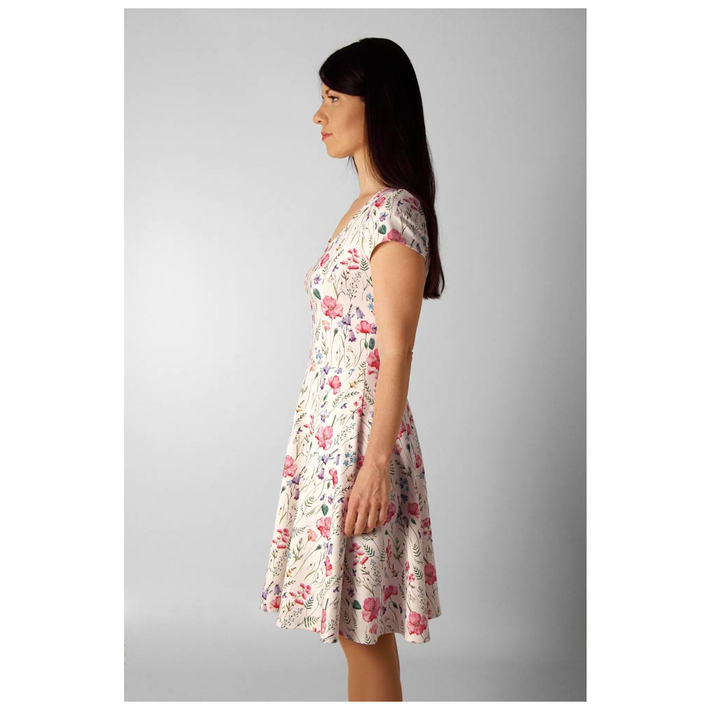 Jsme šaty stvořené pro jarní procházky, při kterých tě budeme jemně objímat a lahodit tvojí postavě. Můžeme ti zaručit, že se s námi budeš cítit svěže, tak jako luční kvítí, které právě vykvétá z orosené trávy.