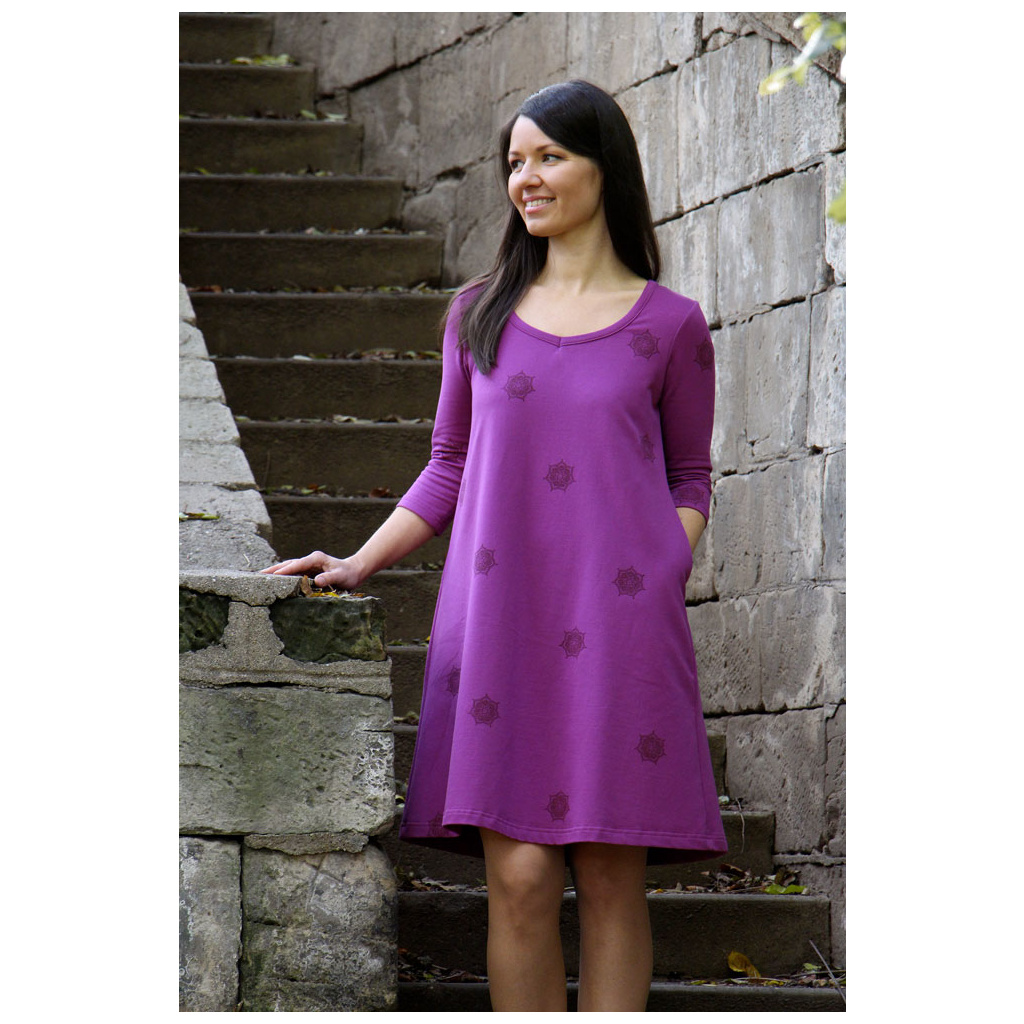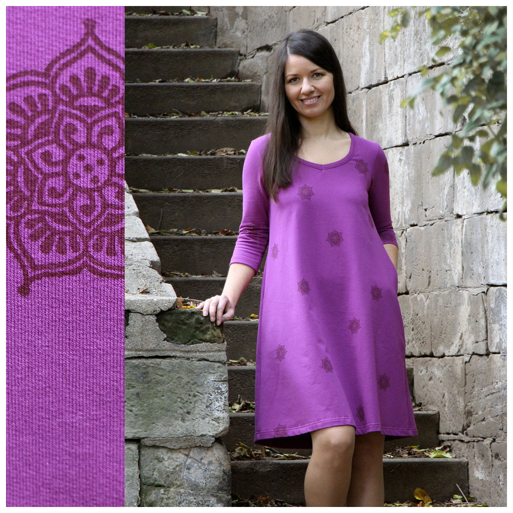 Třetí šaty od Jarosy s ručním potiskem.