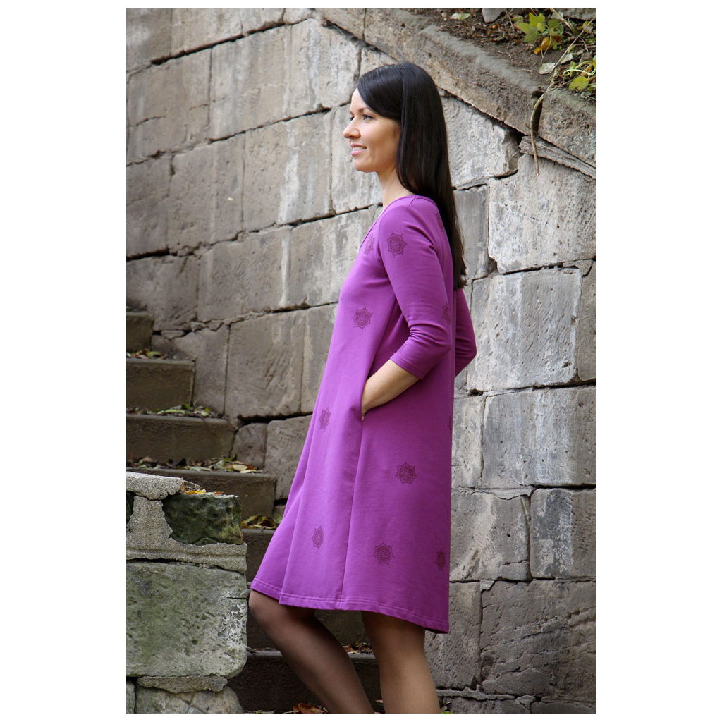 Jsme nepřehlédnutelné šaty s ručním potiskem vloček, a už se těšíme jak budeme společně zářit v ulicích. Zahřejeme tě během chladnějších měsíců, a přitom nás na těle skoro neucítíš, tak jsme pohodlné.