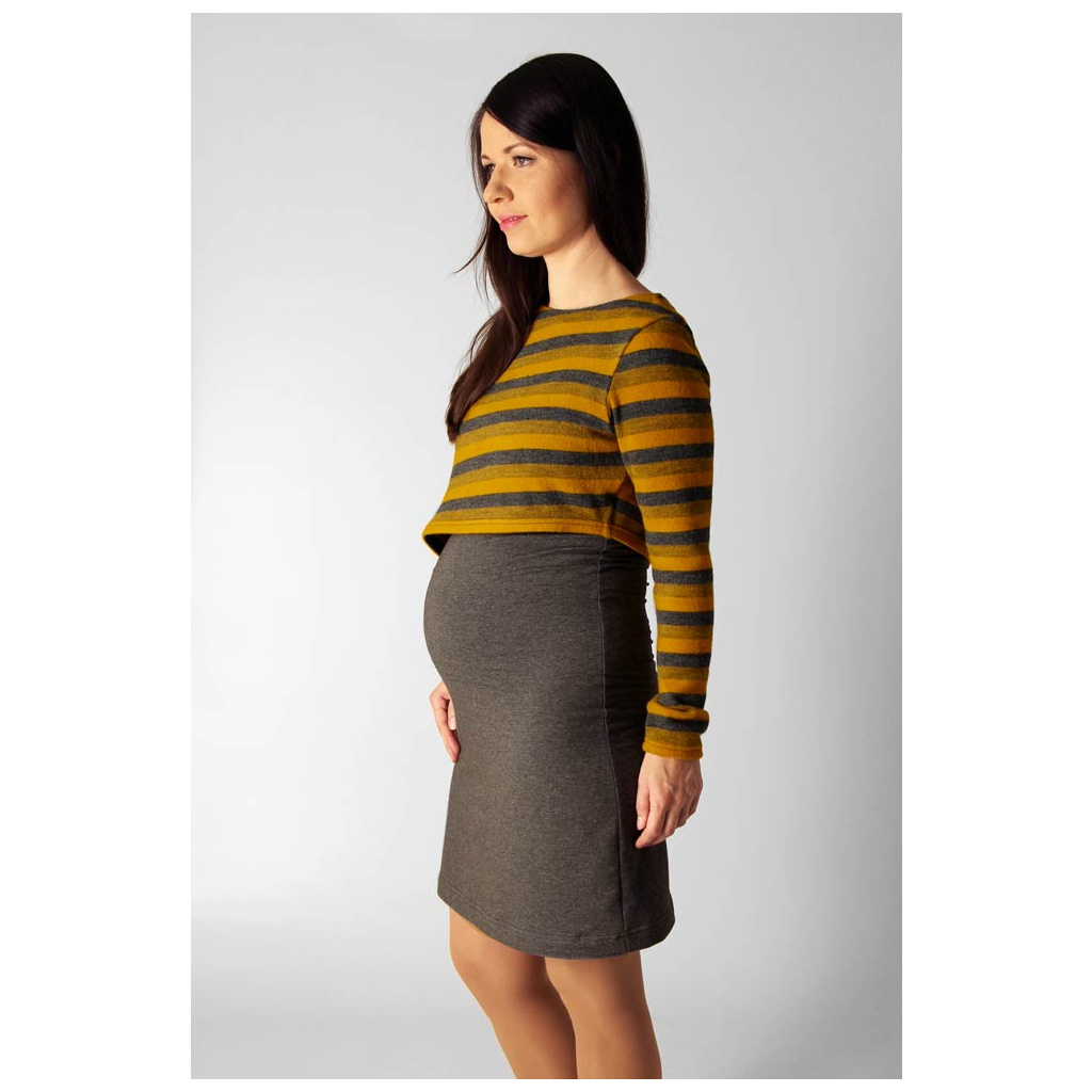 Ahoj, jsme teplé šaty původně stvořené hlavně pro nenápadné kojení, ale lze nás nosit i úplně normálně. Skládáme se z pruhovaného a jednobarevného dílu, takže naše díly můžeš využívat i odděleně.