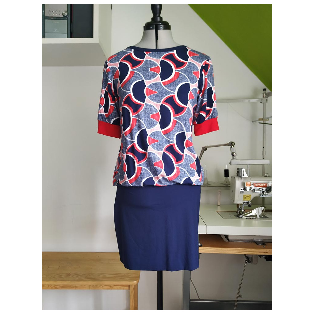Díky volnému vrchnímu dílu není nutné hlídat si bříško, a poskytujeme dost prostoru i pro těhotenské bříško. Příjemný kontrast k tomu vytváří přiléhavá sukýnka. Věříme, že se v našem ozkoušeném střihu budeš cítit skvěle.